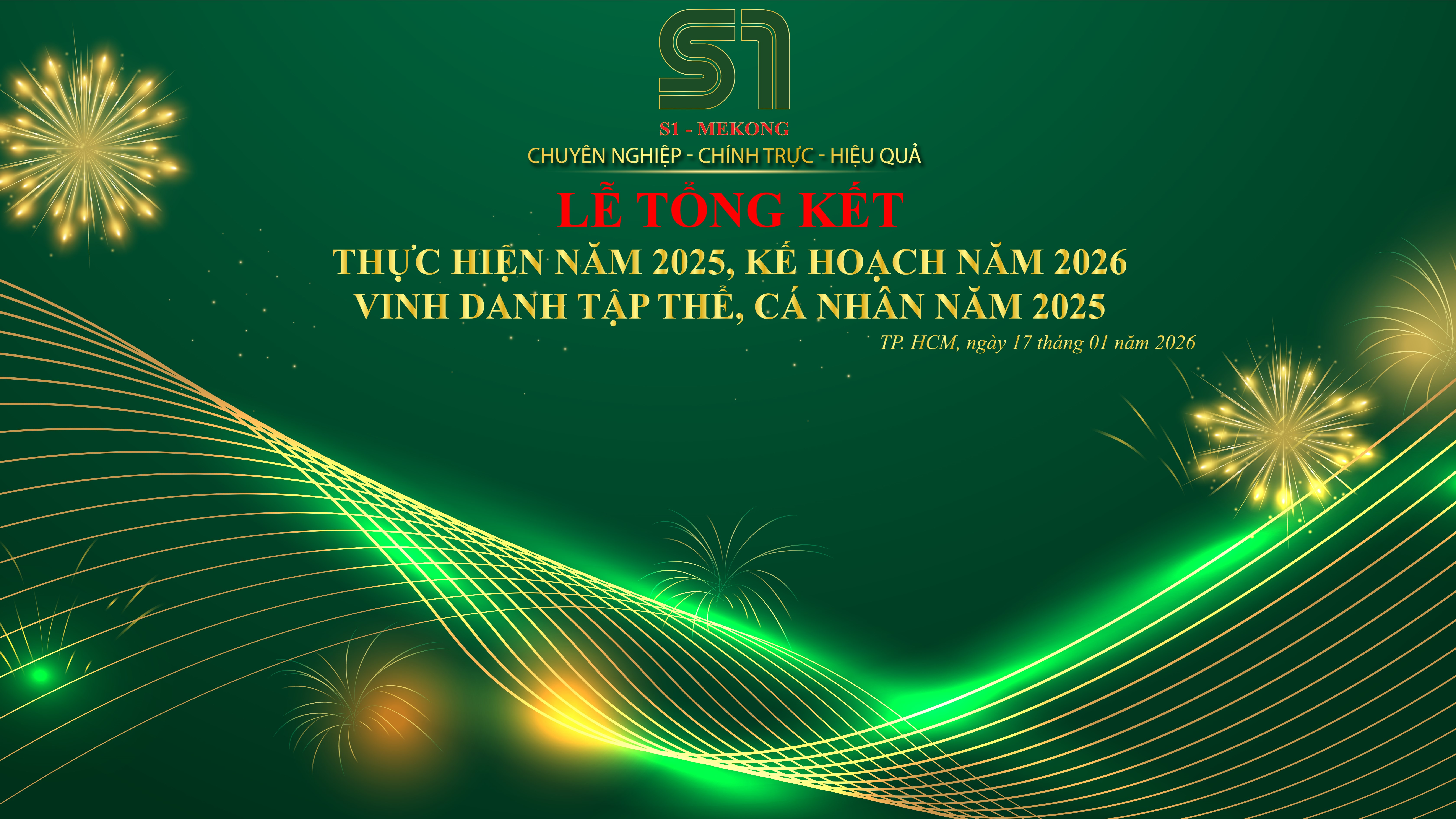 Ngày 17/01/2026, Công ty Cổ phần Đầu tư Xây dựng Số 1 Mê Kông (S1 - MEKONG) đã long trọng tổ chức Lễ Tổng kết tình hình thực hiện năm 2025, kế hoạch năm 2026 và Vinh danh các cá nhân, tập thể tiêu biểu năm 2025. Buổi lễ là dịp để Công ty nhìn lại những kết quả đã đạt được trong năm qua, đồng thời ghi nhận và biểu dương sự đóng góp của toàn thể cán bộ – nhân viên.