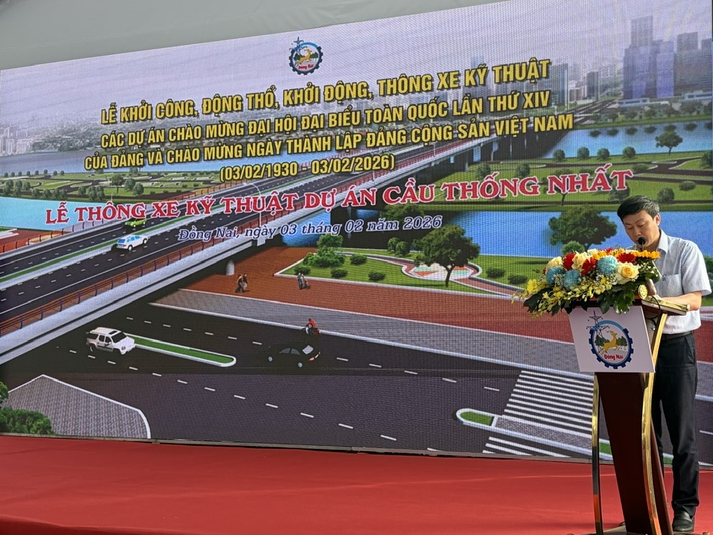 Sáng 03/02/2026, tại tỉnh Đồng Nai, Lễ thông xe kỹ thuật Cầu Thống Nhất đã được tổ chức trang trọng trong chuỗi hoạt động chào mừng kỷ niệm 96 năm Ngày thành lập Đảng Cộng sản Việt Nam (03/02/1930 – 03/02/2026).